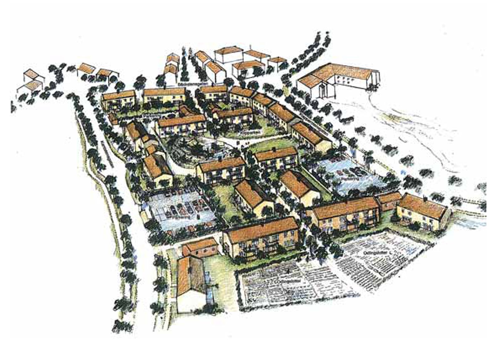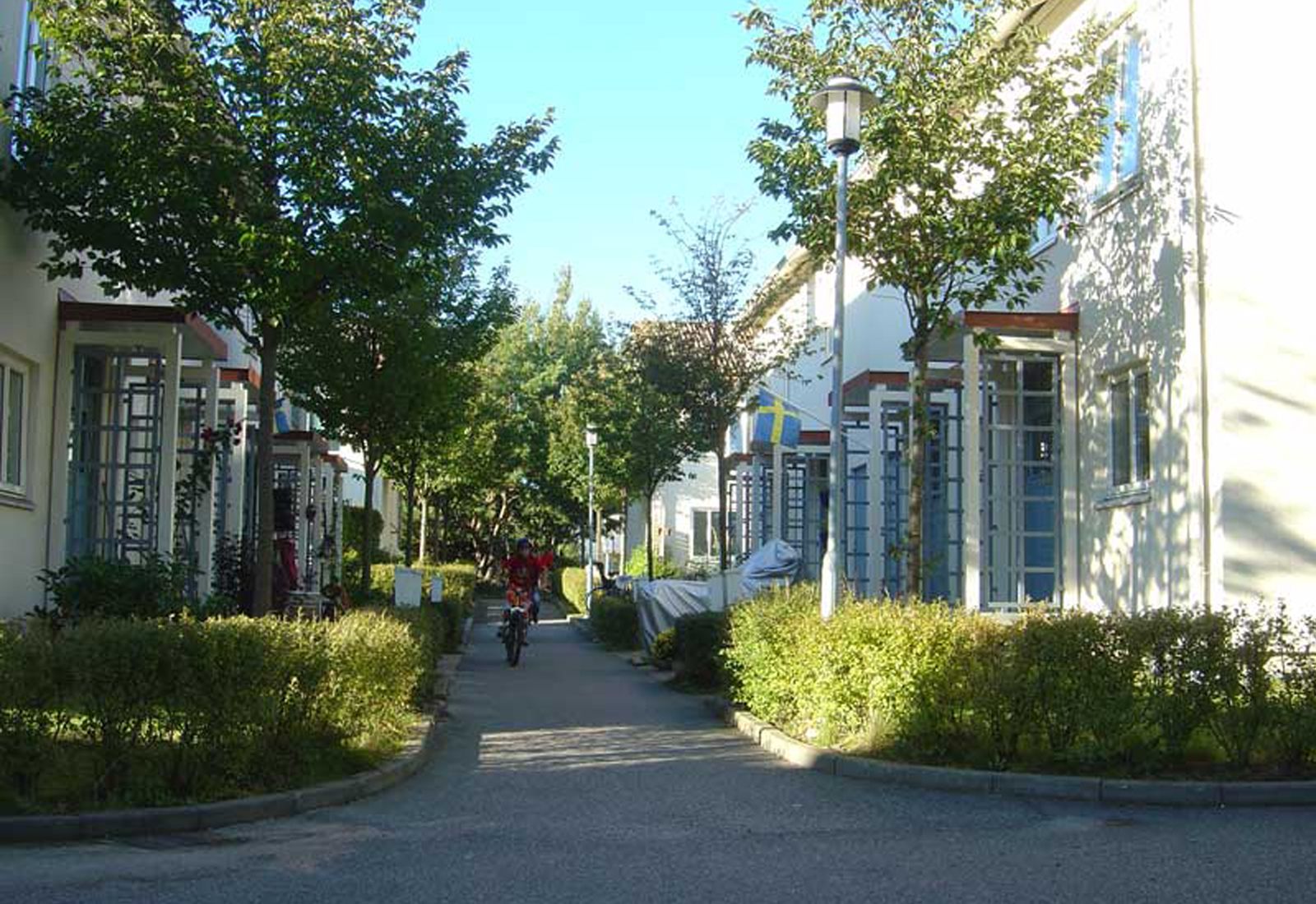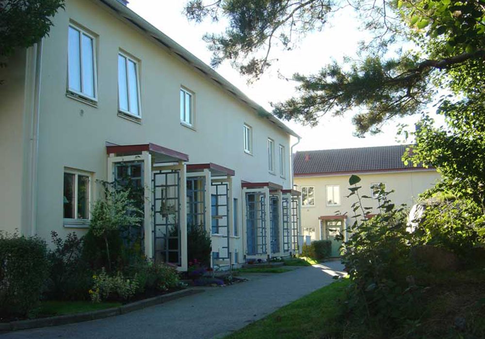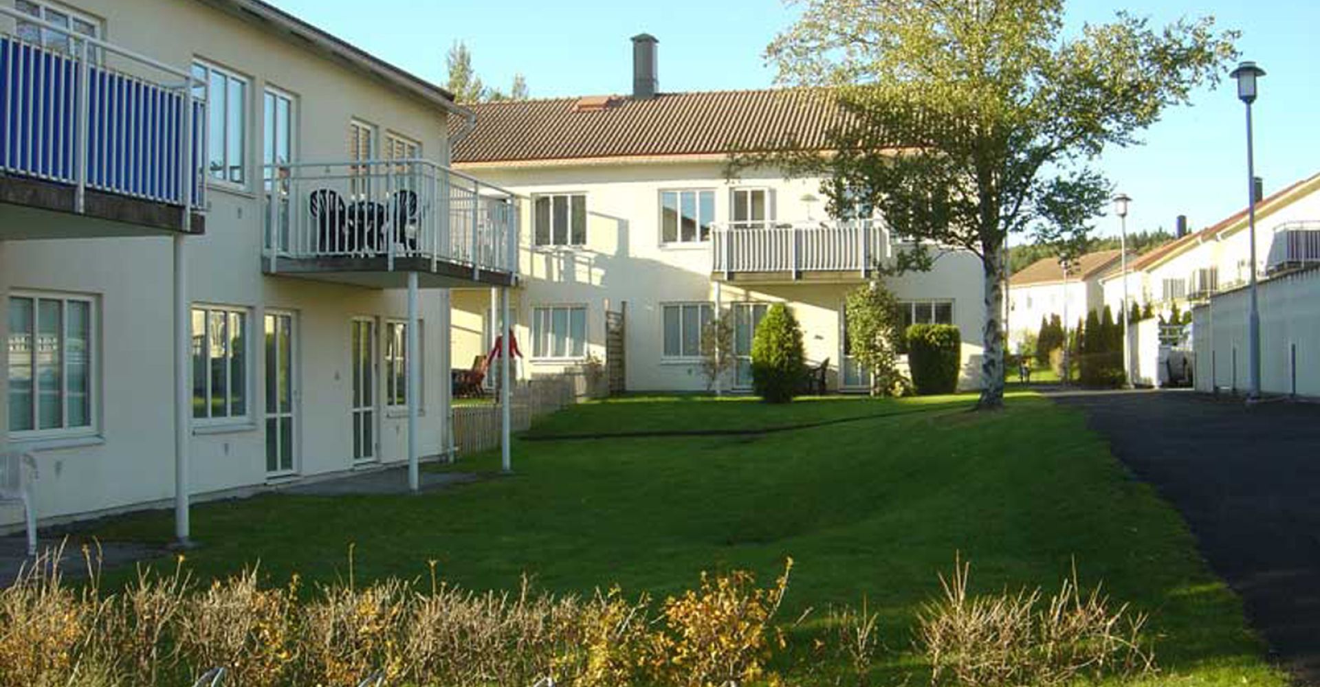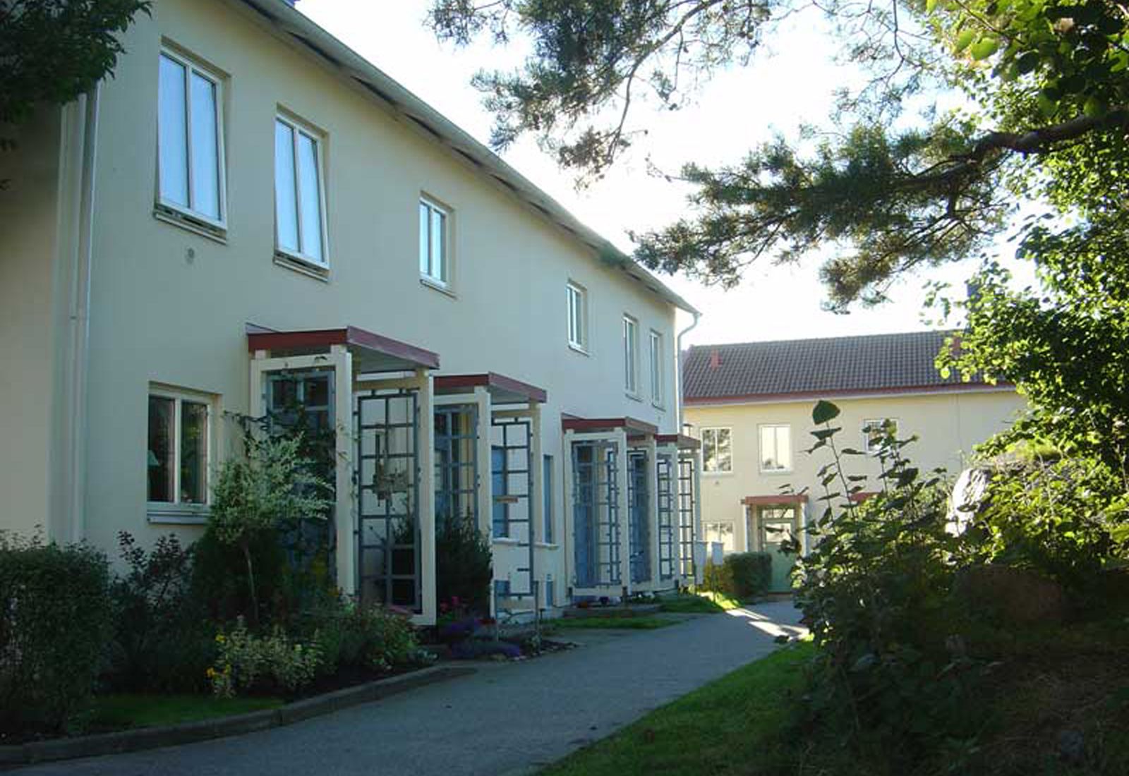 Område med flerfamiljshus och radhus. Totalt 82 lägenheter i hyresrätt, med små yteffektiva lägenheter 2 - 4 rum och kök.