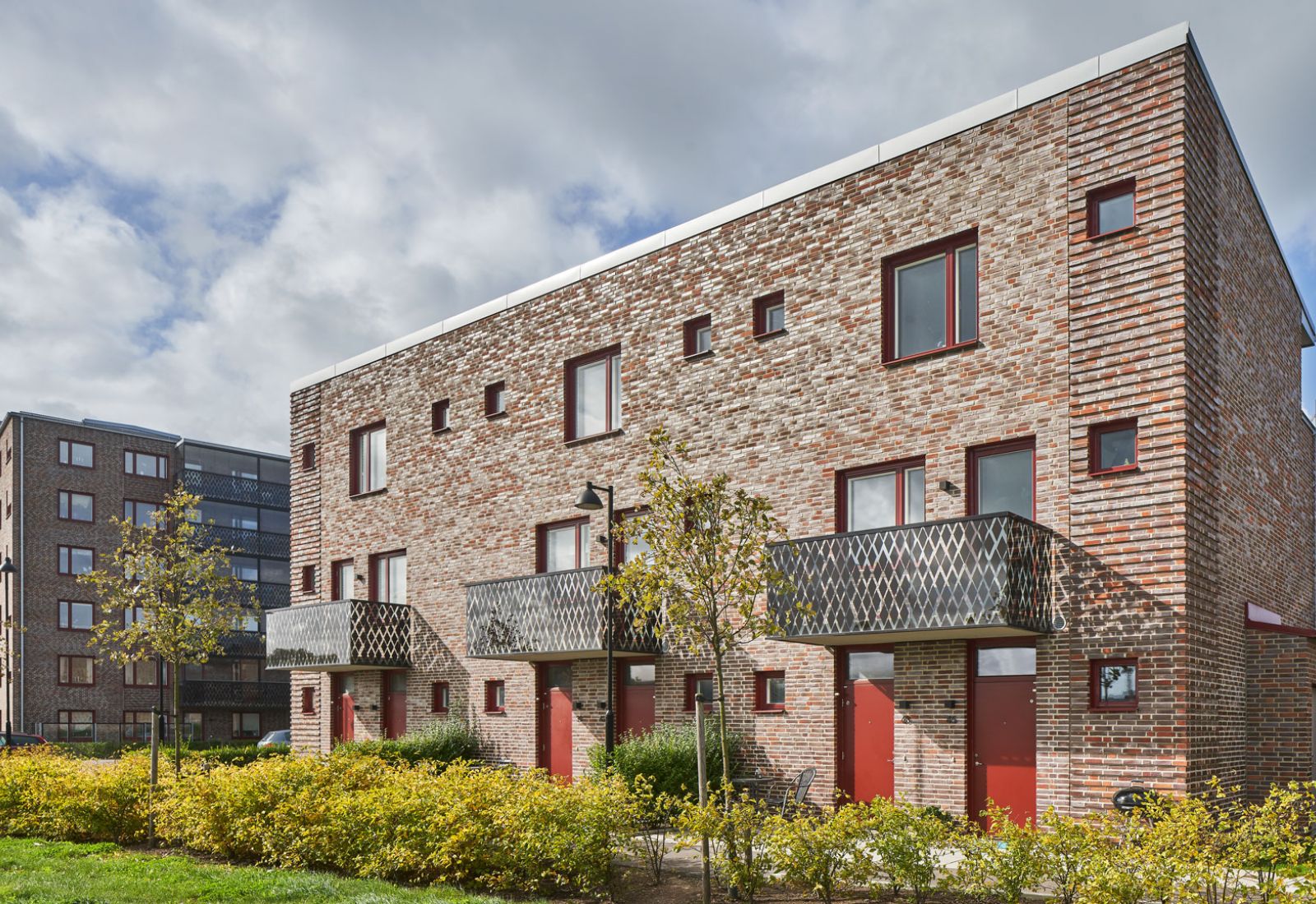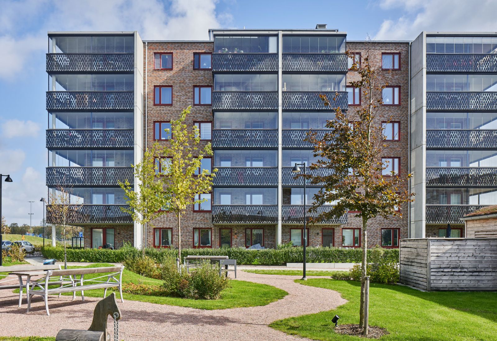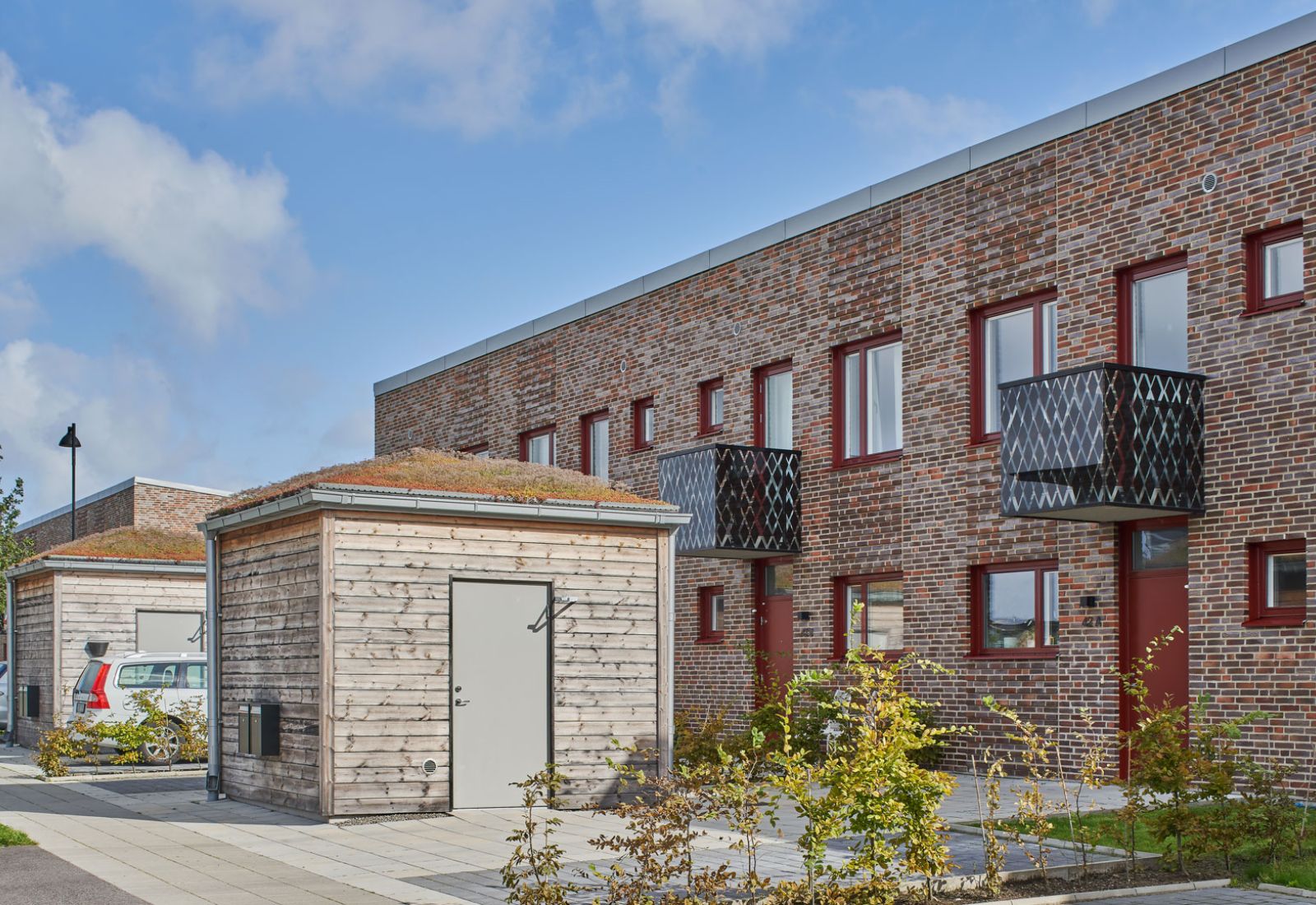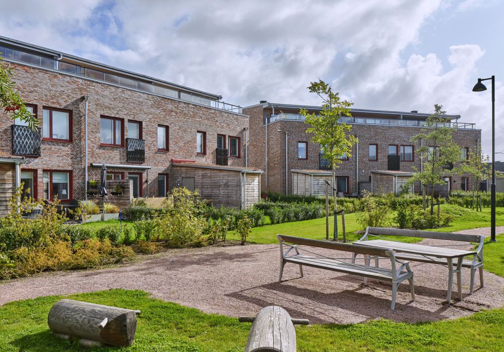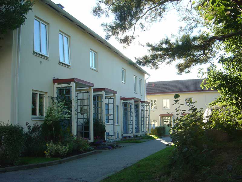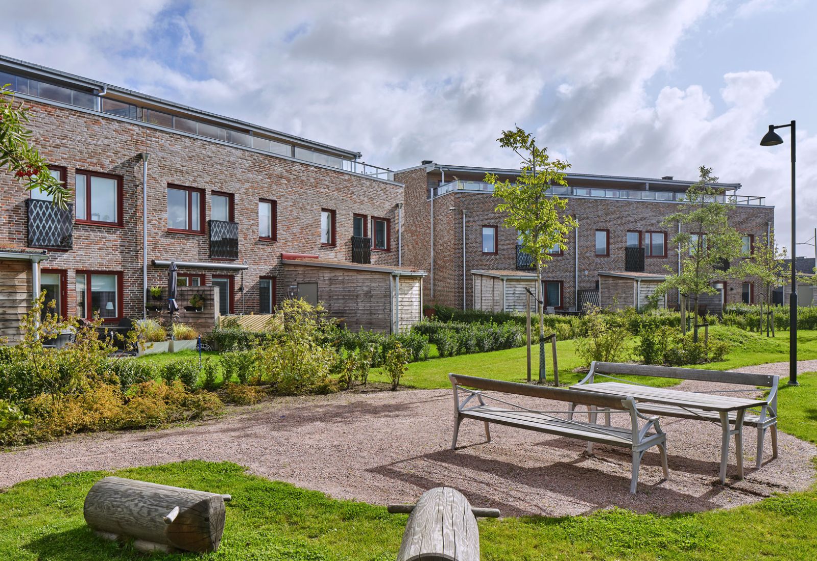 Området innehåller 76 hyreslägenheter i 2-6 våningar. Bostäderna är utformade som allt från små effektiva 2 RoK till 4 RoK, samt radhus och etagelägenheter med stora terrasser mot sydväst. Bostadshusen är grupperade kring tre gårdar som öppnar sig mot söder och som var och en fått sin karaktär.