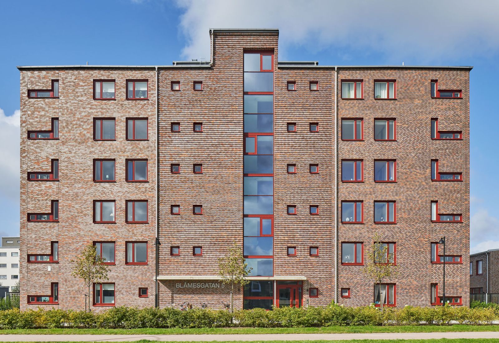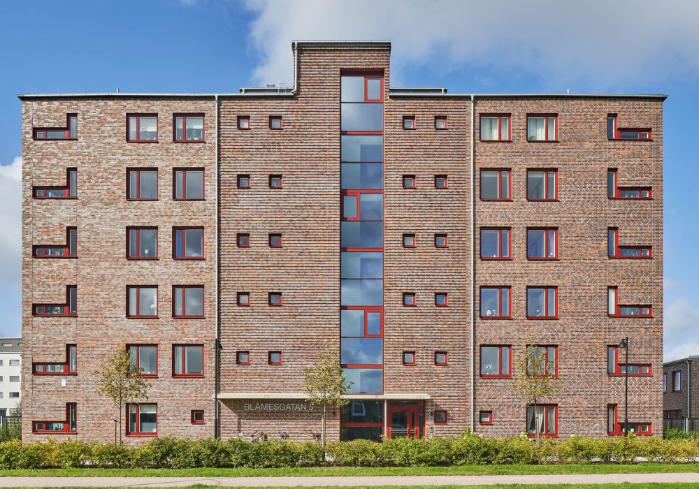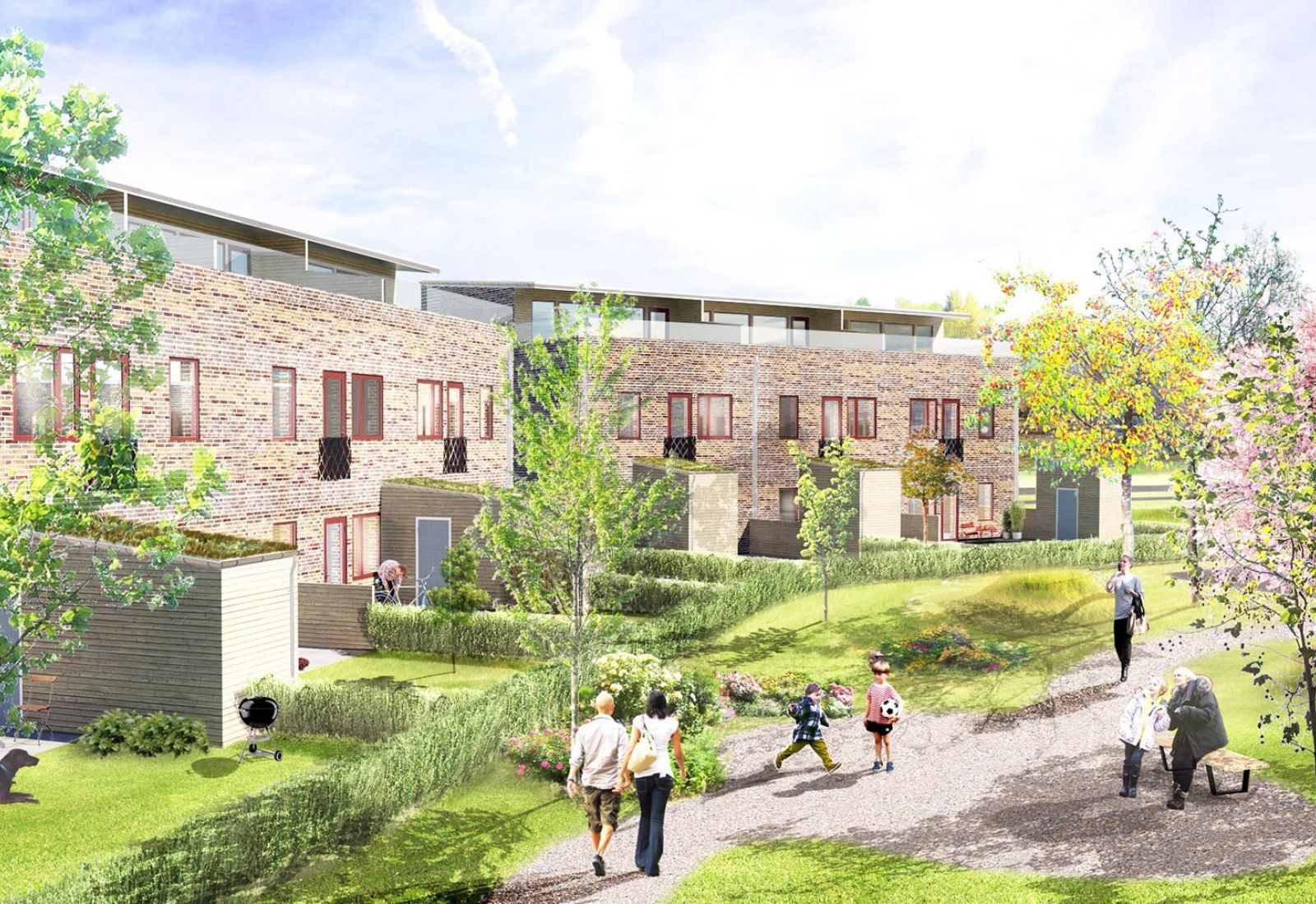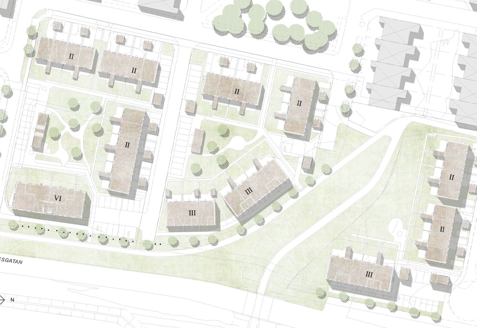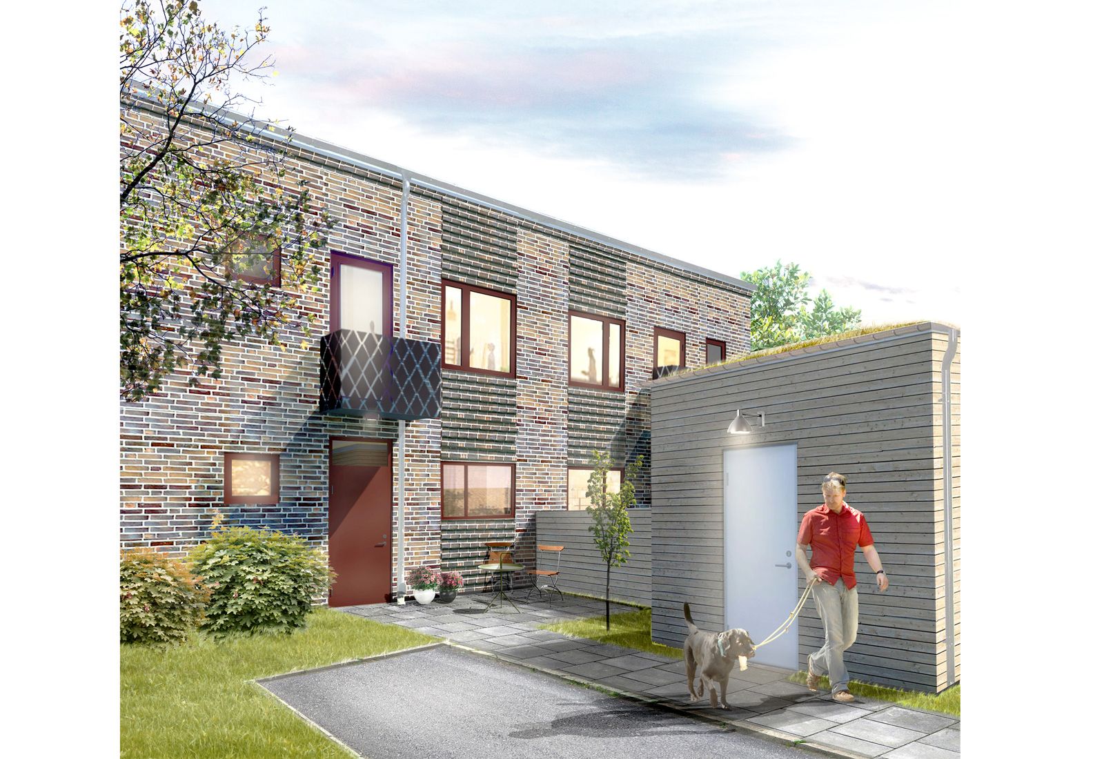 Området innehåller 76 hyreslägenheter i 2-6 våningar. Bostäderna är utformade som allt från små effektiva 2 RoK till 4 RoK, samt radhus och etagelägenheter med stora terrasser mot sydväst. Bostadshusen är grupperade kring tre gårdar som öppnar sig mot söder och som var och en fått sin karaktär.