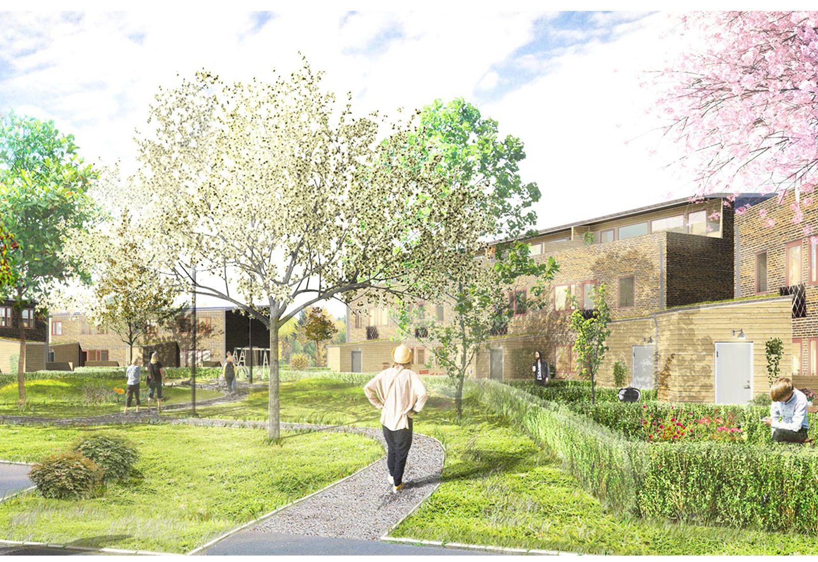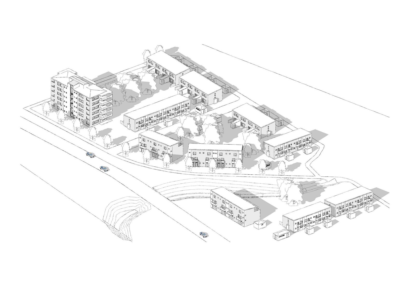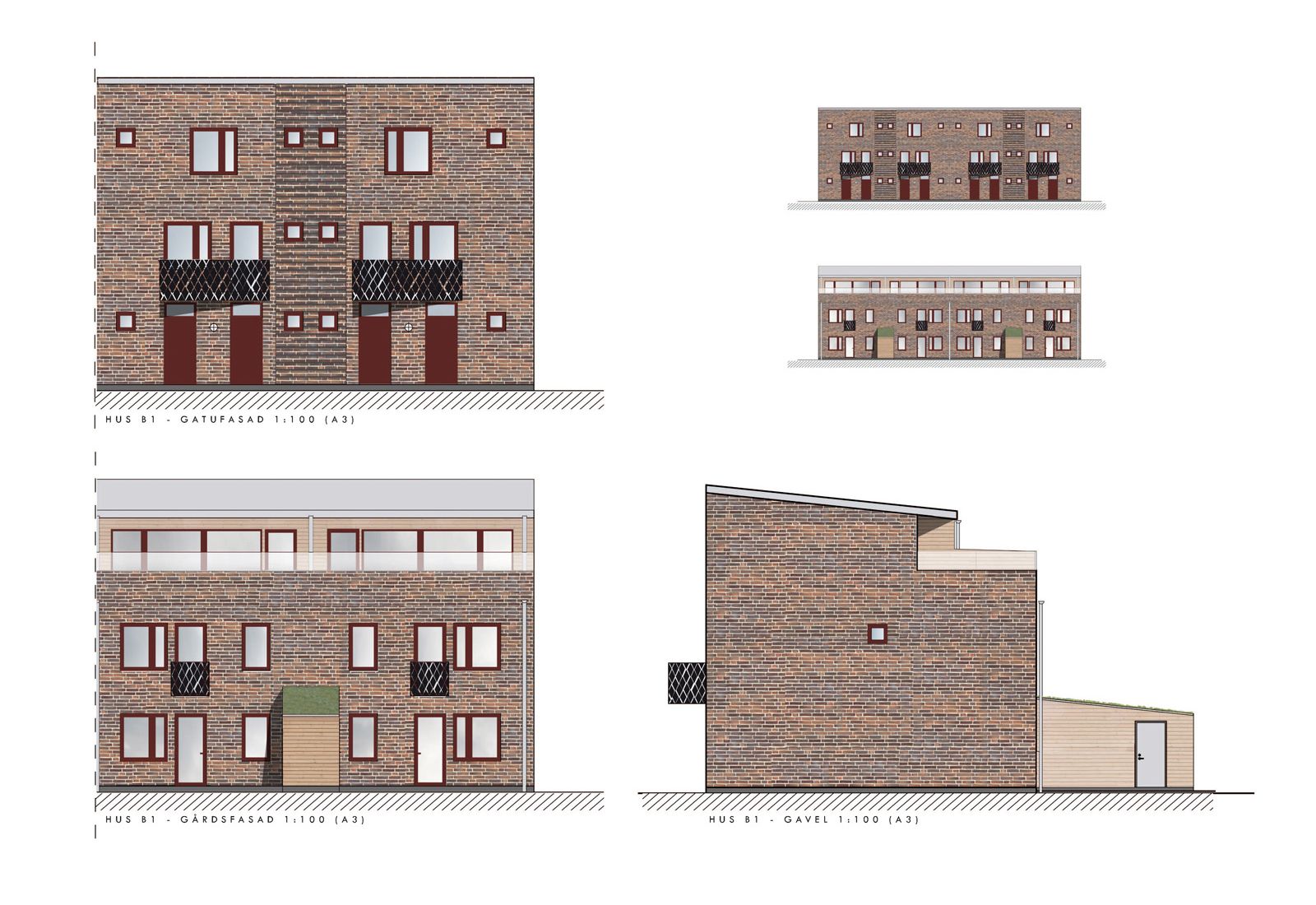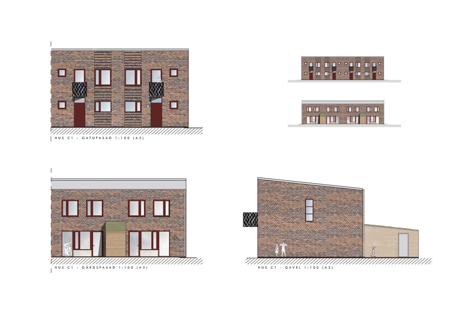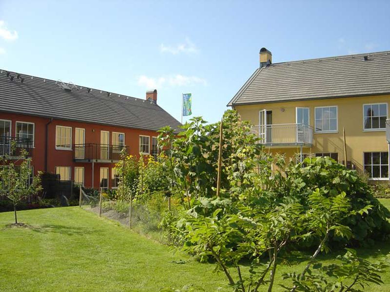Området innehåller 76 hyreslägenheter i 2-6 våningar. Bostäderna är utformade som allt från små effektiva 2 RoK till 4 RoK, samt radhus och etagelägenheter med stora terrasser mot sydväst. Bostadshusen är grupperade kring tre gårdar som öppnar sig mot söder och som var och en fått sin karaktär.