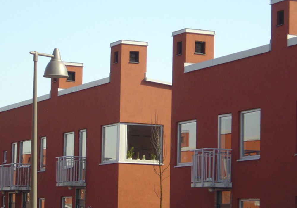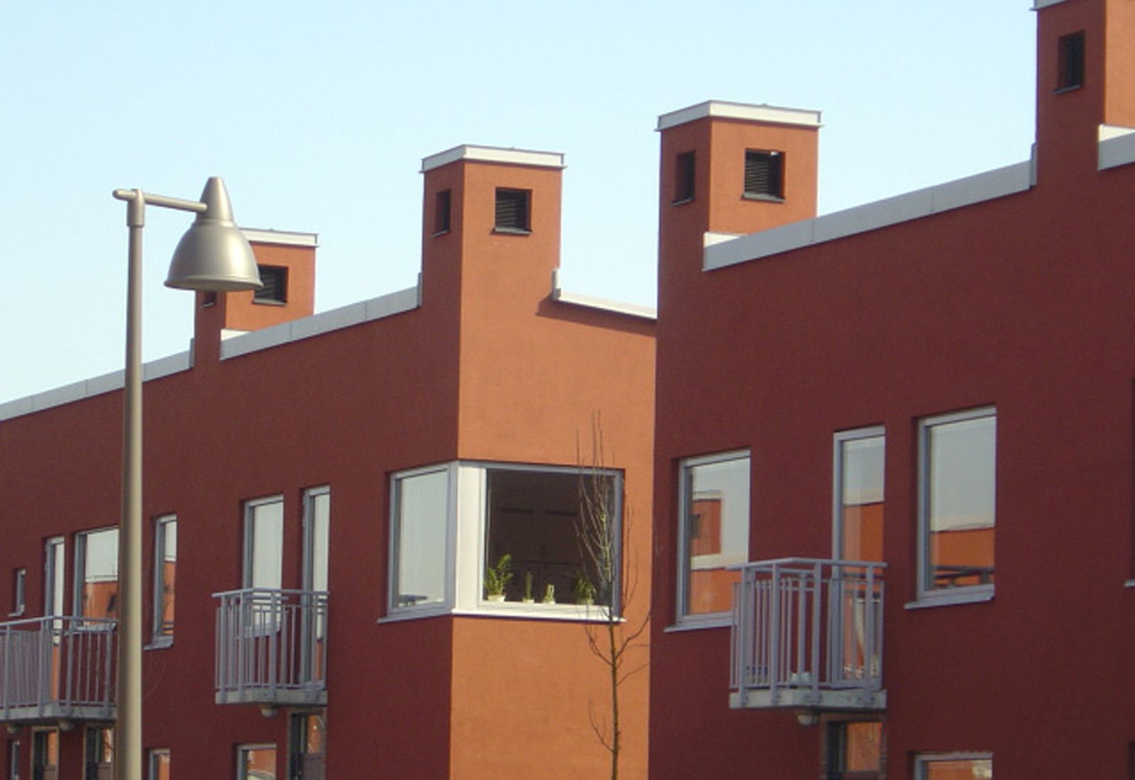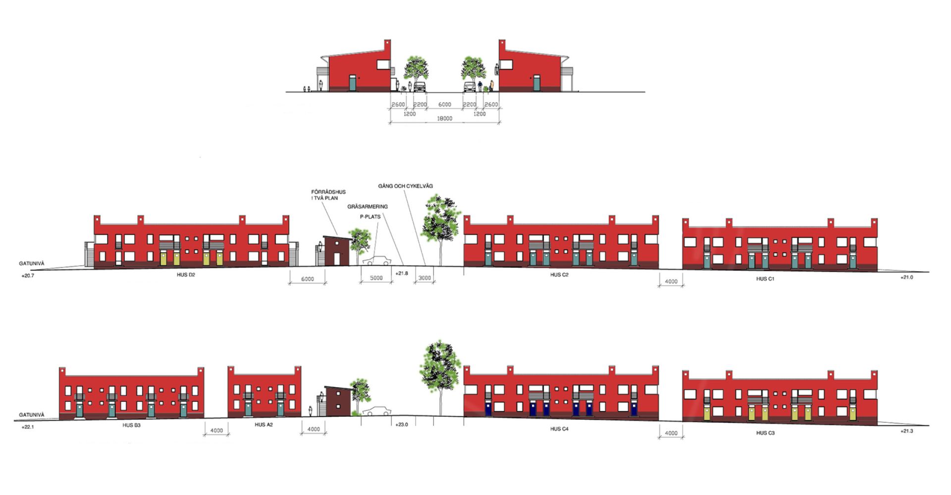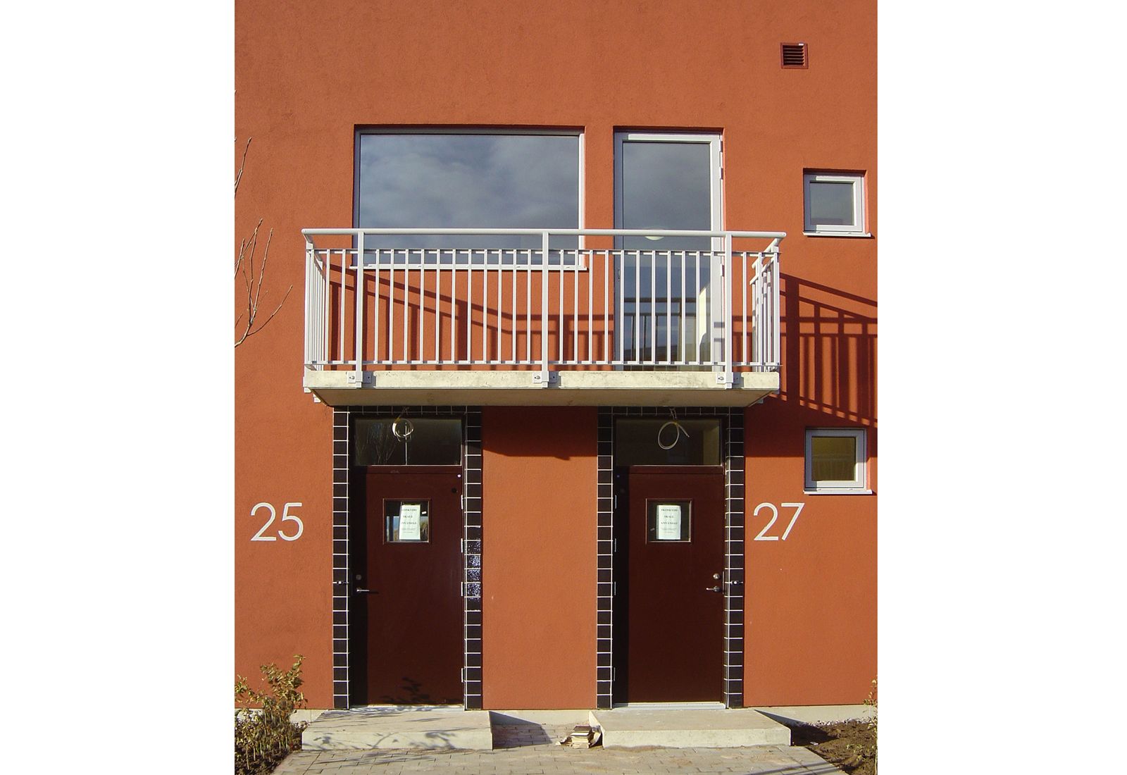 Område med flerfamiljshus och radhus. Totalt 88 lägenheter i hyresrätt.