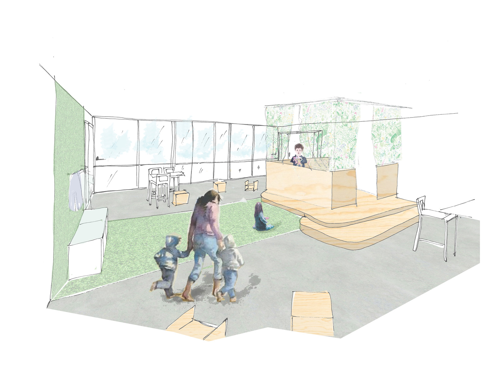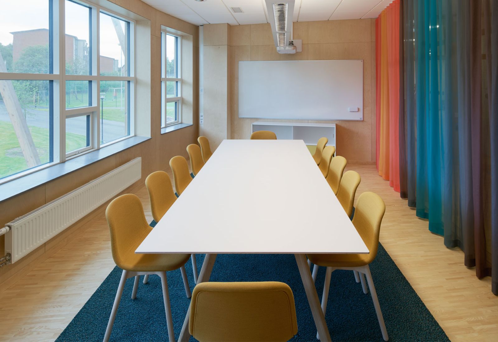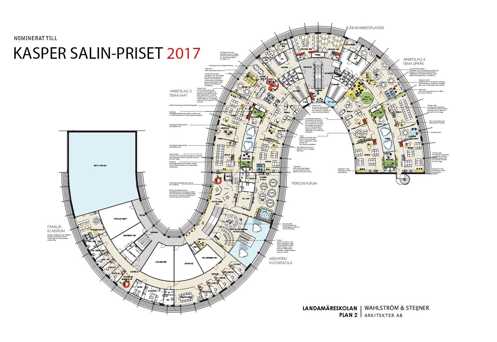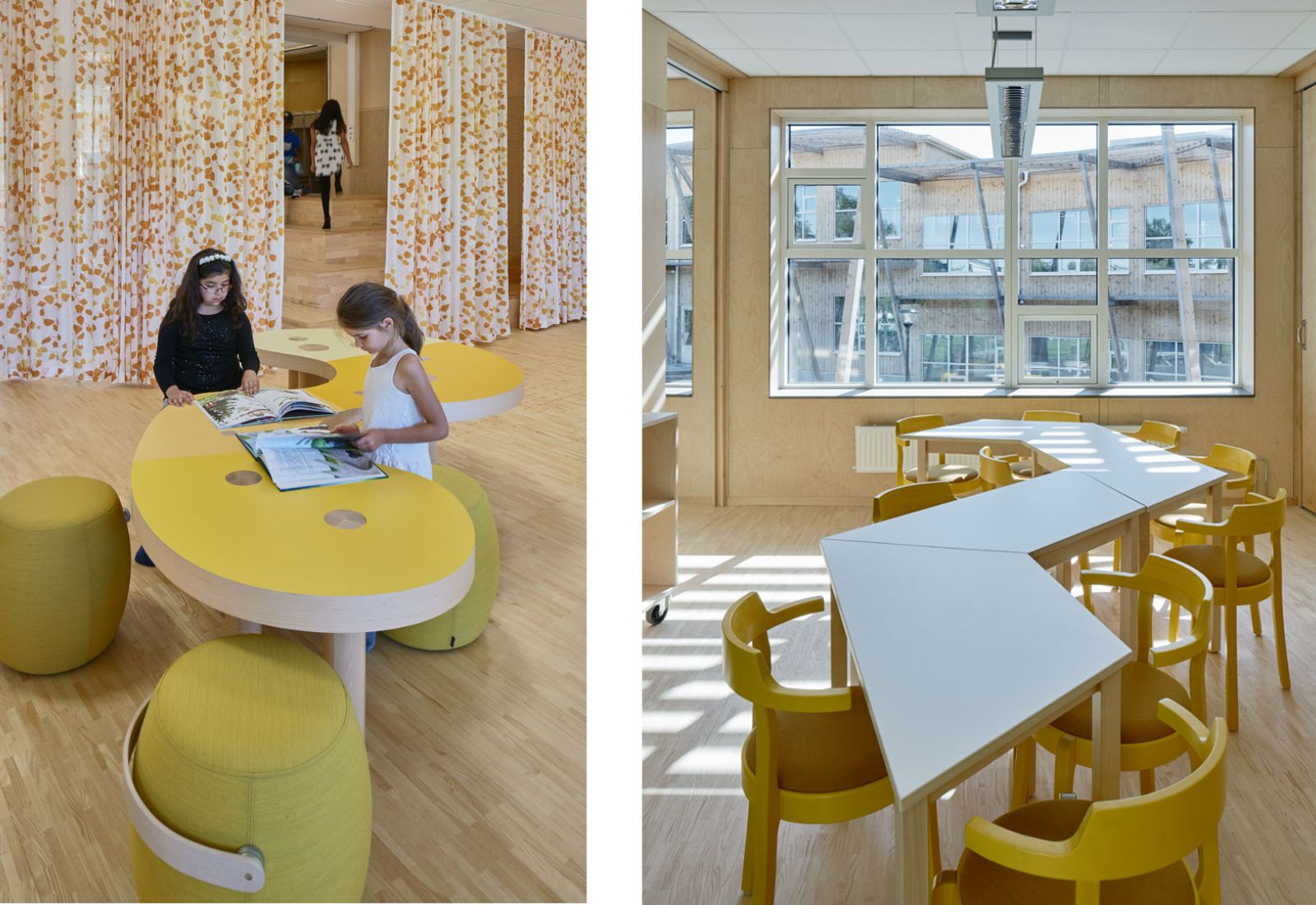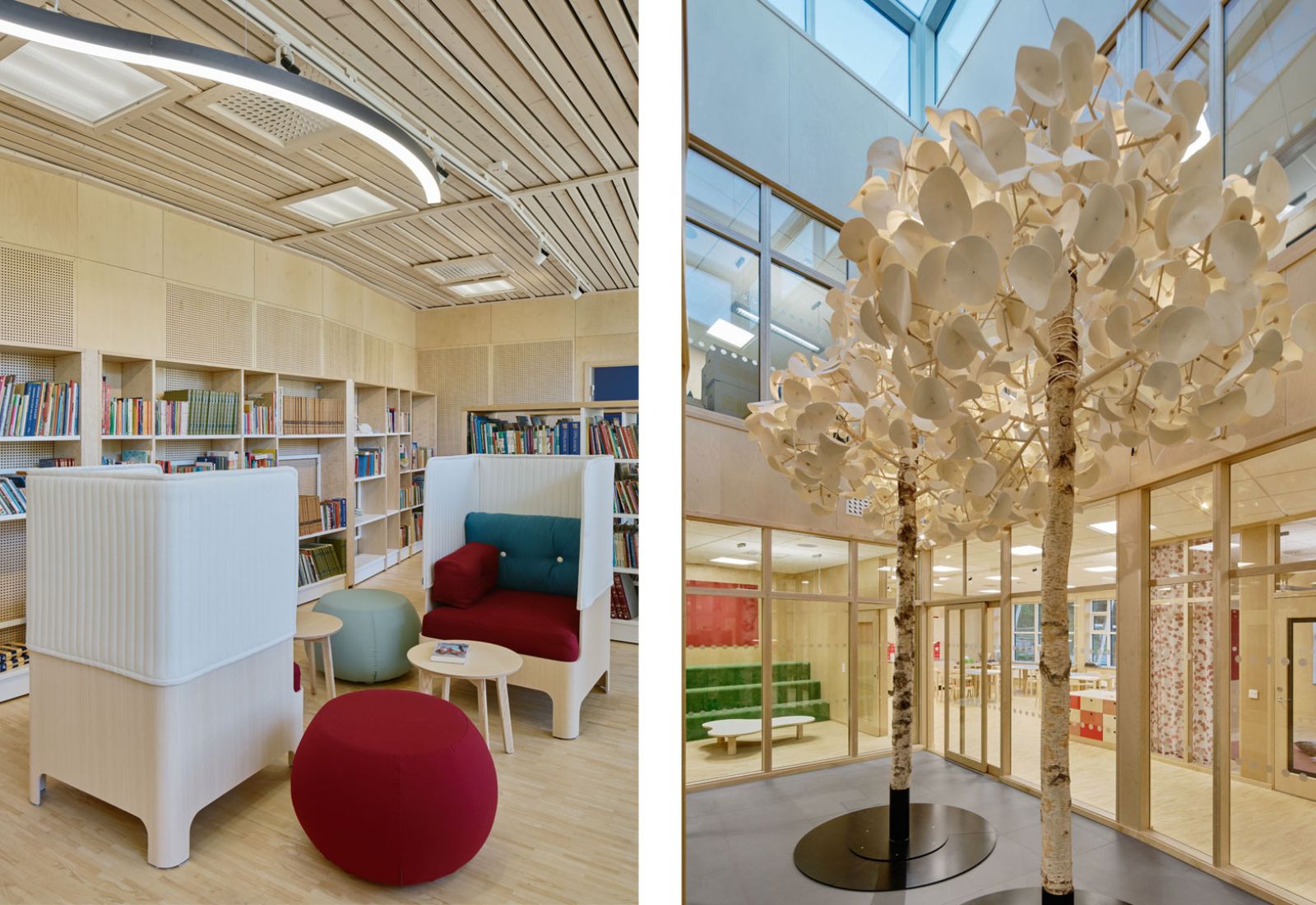 Inredningen utformades för att skapa öppna, flexibla och lustfyllda miljöer med olika sorters studieplatser för olika behov och lärande. Målet för inredningsuppdraget var att skapa en miljö som uppfattas som kreativ, intuitiv och vänlig.