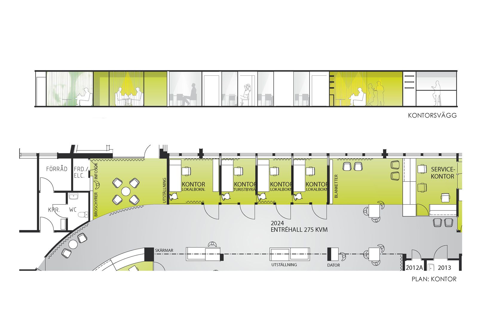 Om- och tillbyggnad av utvändig entré, entréhall, reception, turistbyrå, och kontorslokaler. Projektet innebar också inredningsuppdrag med nyritad specialanpassad inredning.