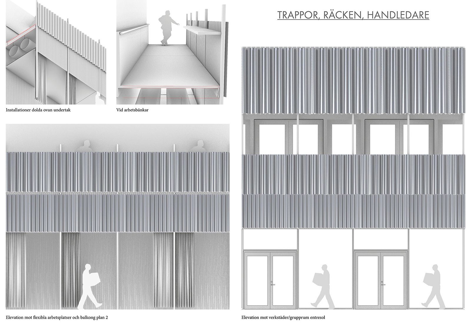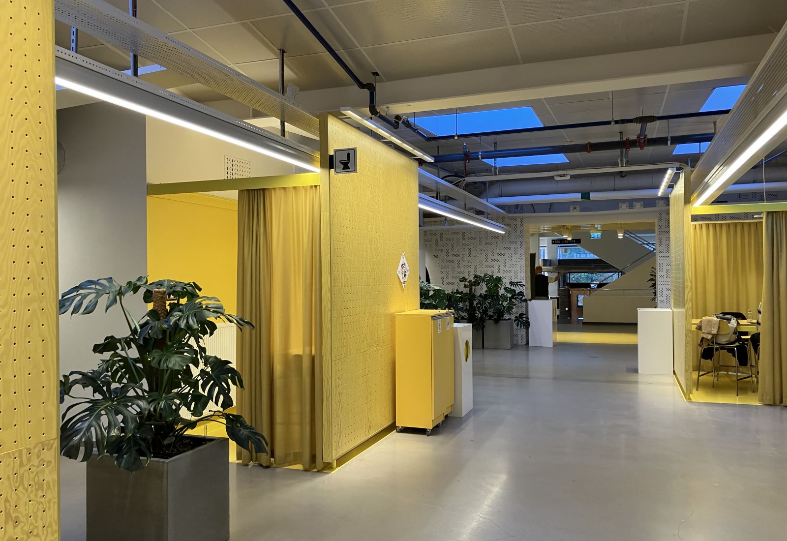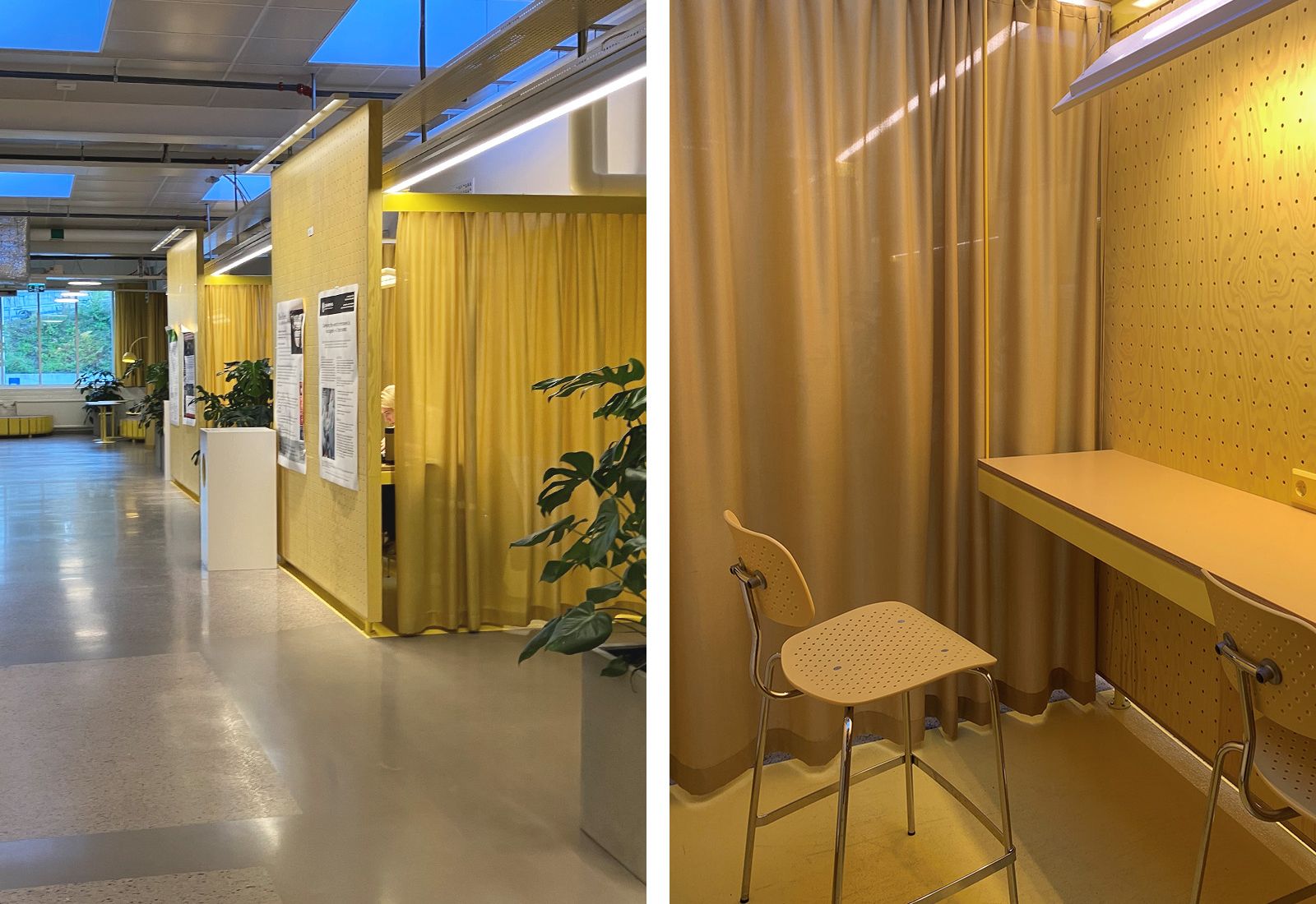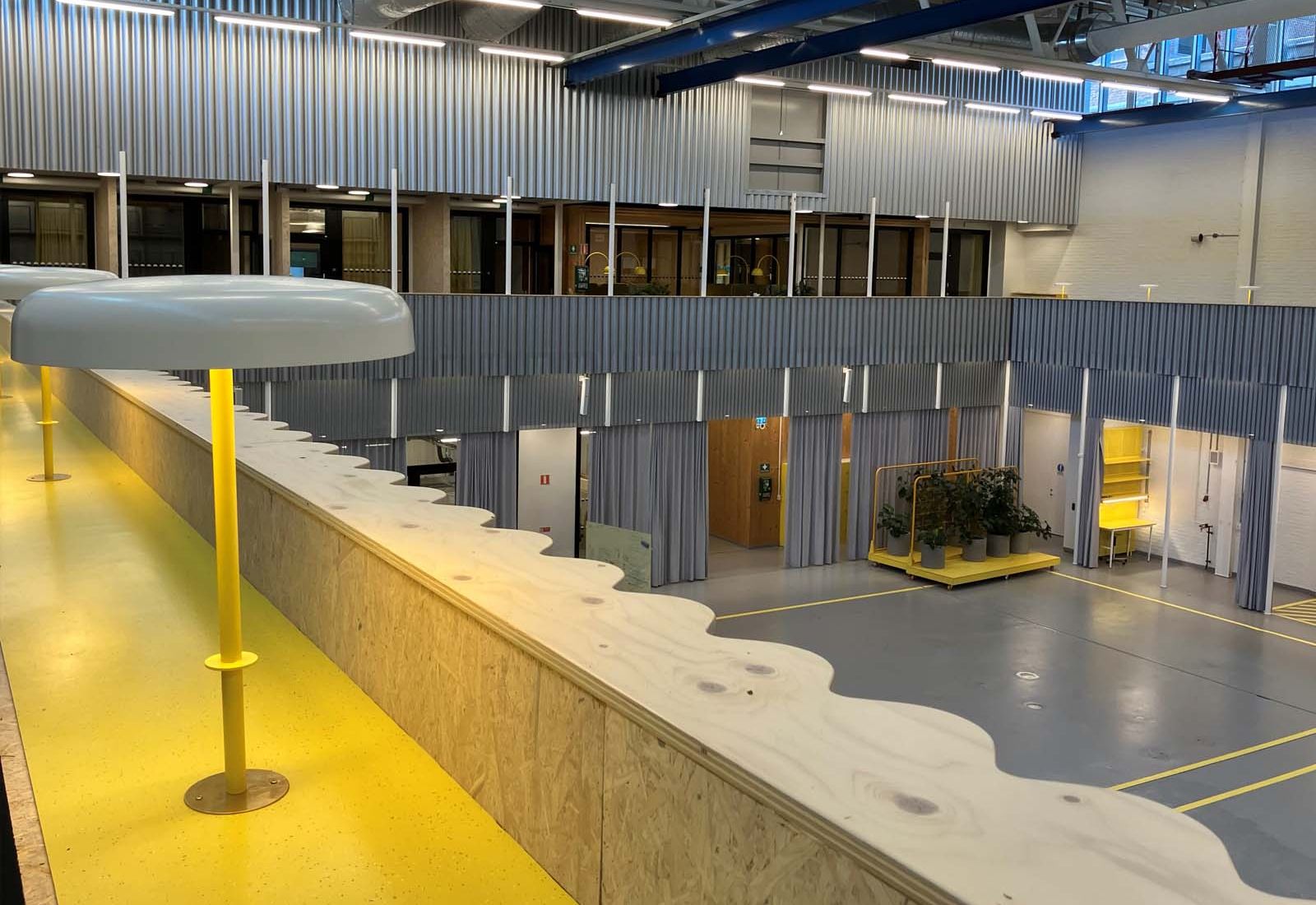 Här kombineras rum för studieplatser, moderna digitala verkstadsmiljöer samt sociala och flexibla ytor för såväl laboration som utställning. Rum som ger studenter möjlighet till unik gränsöverskridande kompetens i en korsdisciplinär läromiljö.