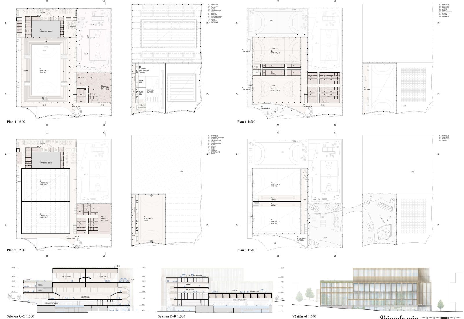 Det nya Centralbadet med sporthallar på 50 000m2 rymmer både evenemang och vardag. Här möts elitidrottare, motionärer, skolklasser och familjer då byggnaden bland annat ska innehålla familjebad, två 50-metersbassänger, två undervisningsbassänger samt en tävlingsbassäng med minst 2 000 läktarplatser, samt fyra sporthallar varav en med publikkapacitet på 1 500 åskådare. Därtill kommer en generös foajé, aktiva bottenvåningar och ett taklandskap som hanterar dagvatten.