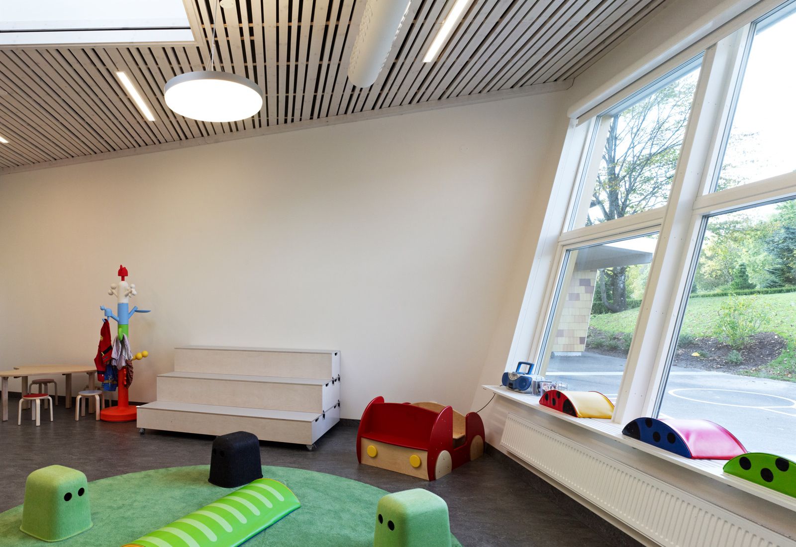 Förskolan innehåller sex avdelningar med storkök och rytmiksal.